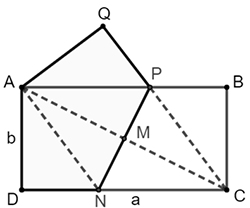 Như hình vẽ trên, khi gập hình chữ nhật ABCD sao cho C trùng với A để tạo thành ngũ giác ADNPQ thì NA = NC, PA = PC do đó NP sẽ là đường trung trực của AC và ANCP sẽ là một hình thoi.